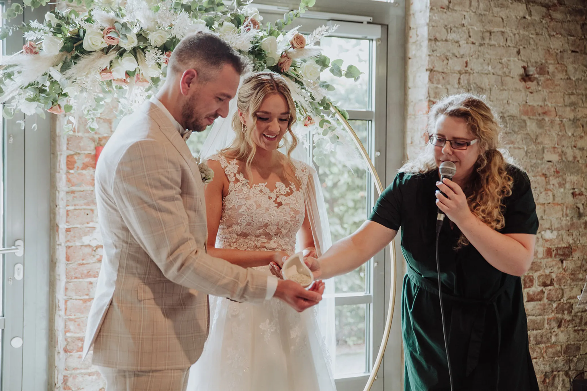 Mit ihrer warmen und herzlichen und vor allem witzigen und sympathischen Art "menschelt" sie sich in die Herzen ihrer Brautpaare.